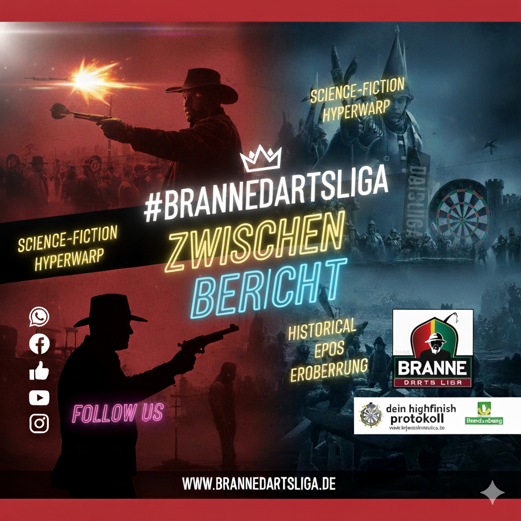 Große Chronik der Liga: 4 Spieltage, 4 Epen – Die Halbzeitbilanz! Die ersten vier Akte sind vorbei, und die #brannedartsliga hat uns von staubigen Saloons bis in ferne Galaxien katapultiert! Was als nervenzerreißender "Showdown" begann, entwickelte sich zu einer gewaltigen "Eroberung" der Tabellen, gipfelte im ultimativen "High Noon" und endete mit einem rasanten "Hyperwarp" in die Spitzengruppe. Die Höhen: Die unaufhaltsamen Kräfte In der A-Liga hat Ally Pally den Schalter umgelegt und mit einer makellosen 3-0-0 Bilanz die Führung übernommen – sie sind die ungeschlagenen Helden der ersten Phase. Doch die wahre Dominanz zeigen die Duos der B-Liga: Die Netzener Dragons und Die Findelkinder fliegen im Dual-Vortrieb durch die Galaxie, beide perfekt mit 4-0-0 Siegen und 12 Punkten. Sie sind die unbesiegbare Flotte, die es nun zu jagen gilt. Die Tiefen: Das zähe Überleben Nicht alle Raumschiffe überstanden den Hyperwarp unbeschadet. Die Spielverderber in der A-Liga und die Die Teufelsdarter in der B-Liga kämpfen verbissen ums Überleben und warten noch auf ihren ersten Sieg – hier braucht es jetzt Nerven wie Drahtseile, um den Abstieg zu verhindern. Die Moral ist entscheidend: Jede Mannschaft muss jetzt ihren "Showdown" suchen, um den Wendepunkt der Saison zu erzwingen. Die Mission: #Bulls4Good – Der Highscore-Goldrausch! Die Mission, gemeinsam die 10.000 Highfinish-Punkte zu erreichen, läuft auf Hochtouren! Jeder Wurf zählt als Goldnugget für den guten Zweck. Besonders hervorzuheben sind die Präzisionsschüsse wie das 124er Highfinish von Sven Wittstock und das beeindruckende 171er von Christian Link (Chris) – das sind die Art von Schüssen, die nicht nur Spiele entscheiden, sondern auch das Gesamtziel in greifbare Nähe rücken lassen. Der Blick nach vorn: Tipps für die nächsten Duelle Was lehren uns die ersten vier Spieltage? Konstanz ist König (A-Liga): Die Tabellenspitze ist eng. Die Teams, die auch in den knappen 9:9-Duellen die Nerven behalten, werden am Ende das Sheriff-Abzeichen tragen. Angriff ist die beste Verteidigung (B/C-Liga): Die Top-Teams ziehen mit hohen Siegen davon. Wer im Verfolgerfeld bleibt, muss aggressiver spielen und sich auf Highscores und Shortgames konzentrieren. Jeder Highfinish zählt: Vergesst nie die Bulls4Good-Mission! Der Fokus auf das Finishing ist nicht nur für den Sieg wichtig, sondern füllt den Topf für die Verlosung! Spezial-Angebot für das Protokoll-Heft Du bist erst jetzt eingestiegen? Kein Grund zur Panik! Wir haben vorgesorgt: Die Protokoll-Hefte mit den bereits eingetragenen Glückswörtern (Showdown, Eroberung, High Noon, Hyperwarp) können jetzt auch nachträglich erworben werden. Pro eingetragenem Wert erhöht sich der Preis des Hefts um 2 €. So bist du sofort bei der Verlosung dabei! #Darts #DartsLiga #Bulls4Good #Halbzeitbilanz #Spannung #OnlineDarts